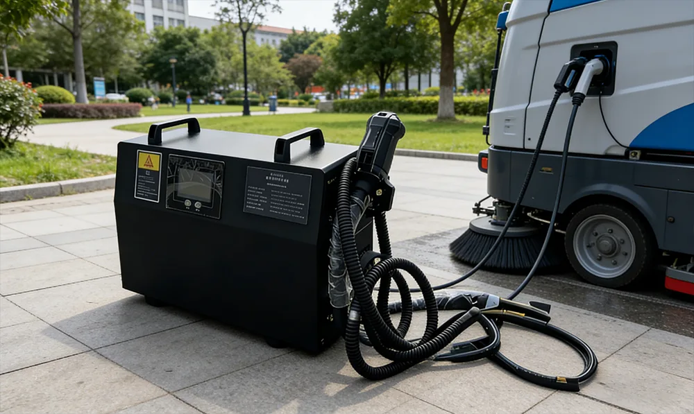 Pour répondre aux besoins de fonctionnement extérieur à haute fréquence des chariots élévateurs électriques et des équipements de nettoyage, il est équipé d'une coque étanche à la poussière et à l'eau IP41 pour résister à la pluie, à la neige et à la poussière. Le corps léger en alliage d'aluminium ne pèse que 55 kg, soit 18 % plus léger que ses concurrents, ce qui le rend facile à déplacer et à déployer.